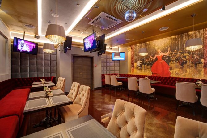The karaoke club will not be silent on New Year’s Eve. It is there that the main celebration will take place – the new year’s Eve. It offers an exquisite menu, a sea of champagne, incendiary songs and dances, a raffle of gifts. Santa Claus will not miss such fun, who will come specifically to congratulate you on the New Year holidays.