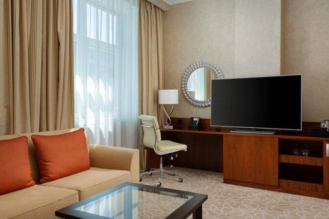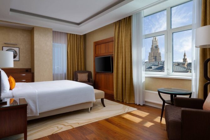 On Novy Arbat in the heart of Moscow is a new prestigious hotel «Marriott Moscow Hotel Novy Arbat». Resting in it, guests can enjoy stunning views of the coast of the Moskva River. Within walking distance of the famous Old Arbat, embassies and government agencies. To accommodate guests, rooms of 6 categories are provided, including the presidential suite “New Arbat”. All guest rooms are equipped in accordance with modern standards, some of them have access to a busy street. For those who appreciate peace and tranquility, a room with a view of the patio can be provided. The hotel is ideal both for business trips and for those who came to the city for tourism purposes.
