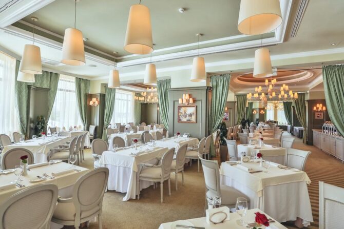 Barvikha Hotel & Spa is interesting for cuisine – on its basis various festivals of haute cuisine, master classes of guru of world cooking, wine festivals are constantly held. Meals are organized on the basis of an exclusive restaurant of Russian cuisine, there is a restaurant of oriental cuisine, bars. The hotel has 65 rooms of the highest class, fully equipped with household appliances, Internet access, safe, mini bar, some have a sauna; shower, bathroom, hygiene products, bathrobe in each room.