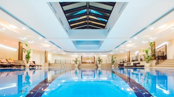Unique is the 72-hole golf course. Meals are organized in several restaurants and bars, decorated in a single style of english restaurant with traditional cuisine. A set of SPA services is classic for a hotel of the highest class. The hotel is loyal to animal lovers; there are non-smoking rooms; accommodation of guests with special needs is provided.
