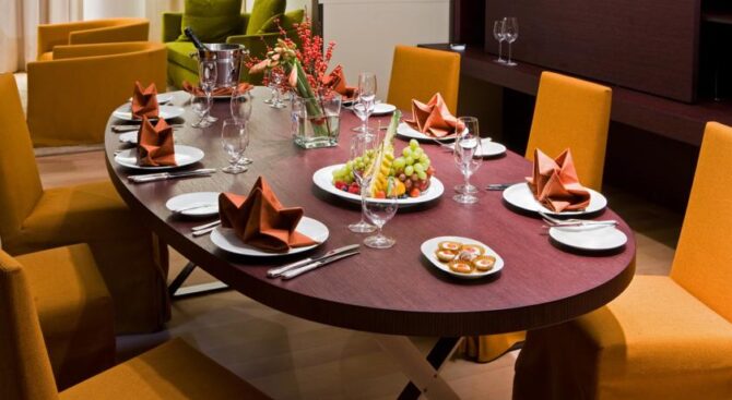 The hotel has a luxurious hall for celebrations, a more modest conference room, meeting rooms. All halls for business events are equipped with the most modern equipment for business meetings. This allows the hotel to host and adequately serve various conferences and corporate events.