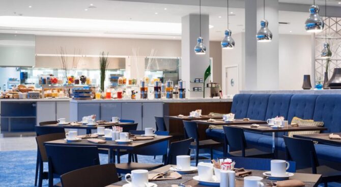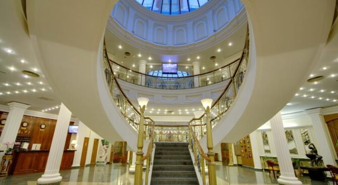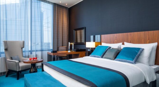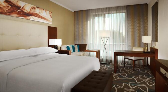 The interior is decorated in a modern style with a predominance of light colors. Each of the 334 rooms has a signature Sheraton bed and a coffee machine. A set of wellness services is quite sufficient for a traveler – swimming pool, hammam, sauna, gyms The kitchen is standard for 4-star hotels with dishes of European cuisine.