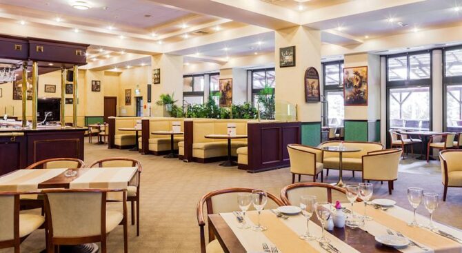 An interesting offer for guests will be summer and winter fishing. The cuisine is traditional, Russian and European. Alcohol in large quantities and variety in the bars and restaurants of the hotel. There is a highlight – beer made in its own brewery. There is a cigar room. Buffet breakfast is included in the room rate. There are great opportunities to expand the range of services.
