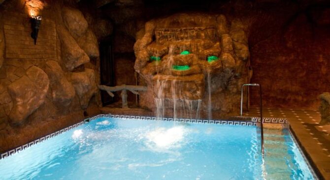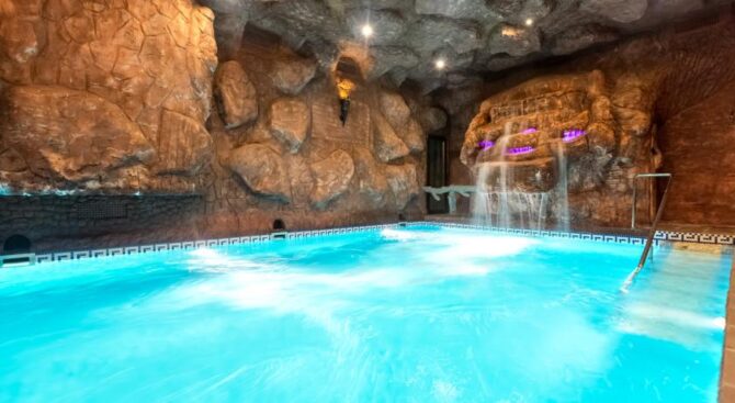 It is rather a suburban European boarding house with Italian, Arabic, Caucasian cuisine and excellent service. In the morning, guests can enjoy a buffet there is a SPA, a bath, a Turkish bath (hammam). Interesting design of the SPA, reminiscent of a cave. To restore strength helps massage made by specialists. The hotel also provides standard services – ironing, luggage storage, air conditioning, heating.