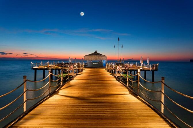 On the territory of the unique entertainment park The Land of Legends is another hotel of the Brand Rixos. Premium services are provided here. New Year’s Eve is no exception. This is one of the best places in Turkey that must be visited. Each show is filled with bright events, and the acting characters are so diverse that they will be remembered for a long time. The gala dinner will be held in the renovated hall of the main restaurant. The program includes performances by artists of the Moscow circus Art Amigo, musicians, vocalists, dancers. At midnight, a fireworks will be held, then the disco will continue until the last participant leaves. In the morning, children’s performances will begin in the park. Guests are waiting for attractions, a water park, a dolphinarium, a village of cartoon heroes “Masha and the Bear”. The hotel grounds will delight lovers of water treatments with a new Balinese area with a heated pool.