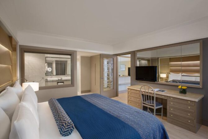 Every year the hotel guests will enjoy the New Year’s premiere of a unique theatrical show. This approach to the organization of holidays attracts a lot of people who want to relax in luxurious rooms,and at the same time become participants in the author’s entertainment program. It offers a truly royal welcome, spacious rooms, restaurants representing cuisines from different continents, designer pools, its own amusement park. On New Year’s Eve, a welcome cocktail accompanied by an instrumental trio, a gala dinner with music from the orchestra, a concert program, a thematic show, a DJ performance are planned. The party will begin at 6:30 p.m. on December 31 and end the next morning. Breakfast is served from 7 a.m. to 10 a.m. From 10 to 12 will be open bistro for those who did not have time to wake up. A concierge service is available to help guests find directions for going during the winter holidays and to help guests buy tickets.