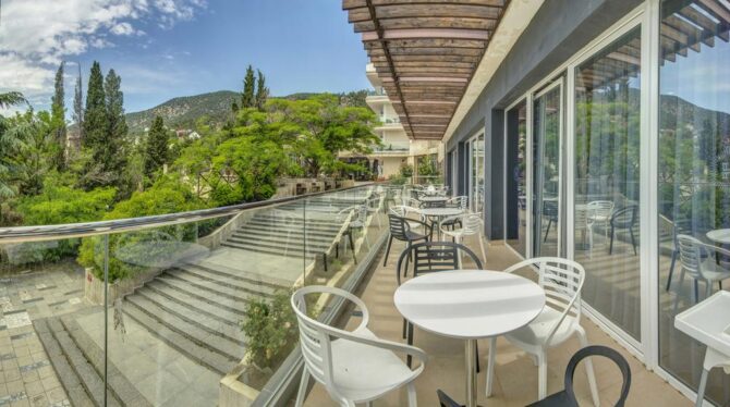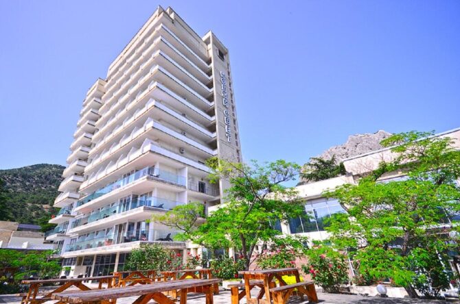 The spacious territory is favorably located on the beach, so you do not have to overcome long distances on the way to the beach. The road takes only a few minutes walk along the fragrant juniper trees. Hotel “New World” has always been famous for its hospitality and comfort. This is a great place for a romantic short weekend and a long-awaited vacation, for organizing international conferences, seminars and business negotiations. Among the many hotels and boarding houses of the Crimea, guests choose this option for a unique opportunity to breathe healthy juniper air, swim on the beach of the Crimean coast, sunbathe, drink champagne prepared according to the recipe of Prince Lev Golitsyn.