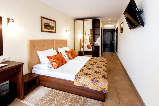 This hotel was built taking into account all world hotel standards. At the same time, architects and builders took into account the peculiarities of the local climate. And thanks to this, it turned out to be a good option for guests with different requirements. “Safe Haven” includes 21 rooms of different categories with excellent design. Guests can come by car and leave it in the guarded parking lot next to the hotel.