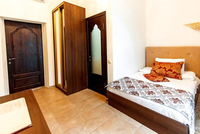 The guest house offers its guests to stay in one of its rooms of different categories. For example, in the “Suite” with one or two bedrooms and a kitchen. Or in a beautifully renovated penthouse with a terrace.