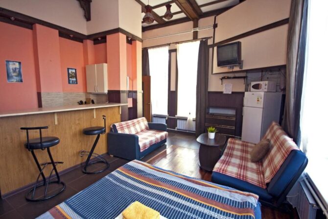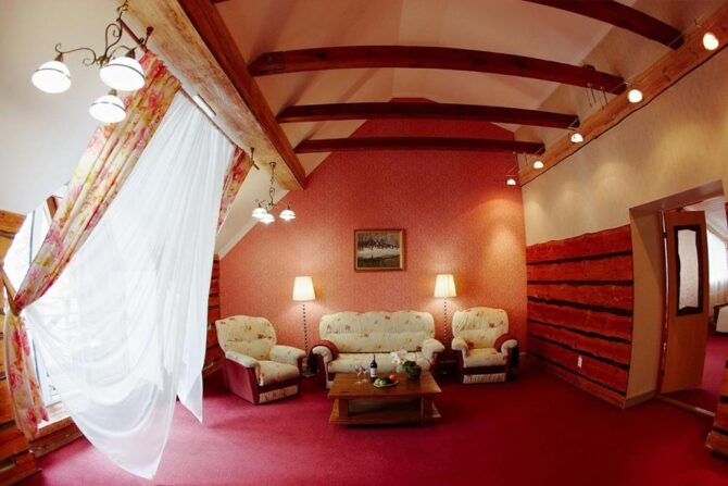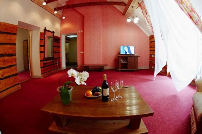 For those who dream of meeting the New Year in a real castle, it is worth paying attention to this recreation center. You can rent a private room,floor or entirely. Additionally, there is a boathouse for 4 people. Mini studio for two is located on the 2nd floor. Each apartment has a kitchen. To services of guests: the organization of hunting and fishing, a bath, rental of vehicles and sports equipment, board games, library. For Christmas and New Year, two special offers for two days and two nights have been developed. Parking is free. A barbecue area with gazebo is also included in the price.
