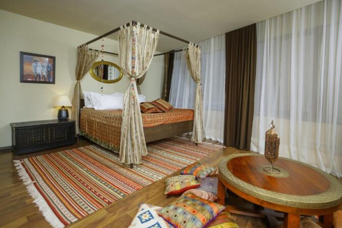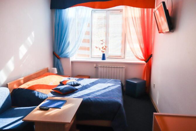 A 20-minute drive from the center of Miass is the tourist complex “Turgoyak”. It is built on the shore of the lake of the same name and consists of several log cottages. All are equipped with kitchens, well-equipped bedrooms and spacious living rooms. The owners of the hotel offer paid guarded parking, gazebos with barbecue facilities, a dry steam room on the shore of the lake, a playroom for children. Meals are organized according to the system “Full board”. The restaurant prepares a variety of food so that guests do not waste time cooking, but have more rest and fun. Here you can gather a friendly company and have fun to celebrate the New Year with a bath, swimming in the snow, fireworks. The chef will enjoy a festive dinner.