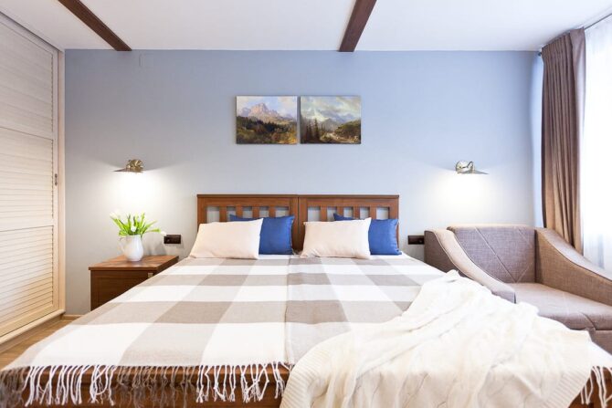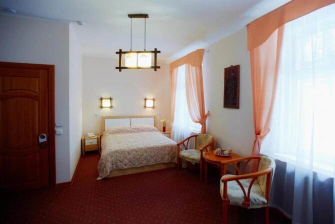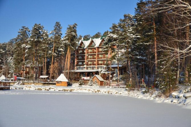 Health complex “Forest Estate” is located on the shore of Lake Uvildy. For accommodation there are comfortable hotel rooms,apartments and detached cottages. Complex meals are organized according to the Swedish line and are served in the dining room “Kharchevnya” three times a day. On the territory of the hotel there is also a restaurant “Fireplace”, a café-bar “Attic”, in the summer season – an open grill-café. It offers wellness treatments in the SPA center. It includes a wellness area, gym, Finnish sauna, Russian water bath, hammam, salt room, phyto-bar. Entertainment options include a billiard room, bowling club, table tennis, karaoke bar. slot machines, children’s room and rope park, minigolf, zoo, fishing, active sports in the fresh air. The New Year’s package includes a welcome dinner, a festive banquet, a children’s Christmas tree, a party for adults (disco + street fun), full board for January 1, breakfast for January 2.