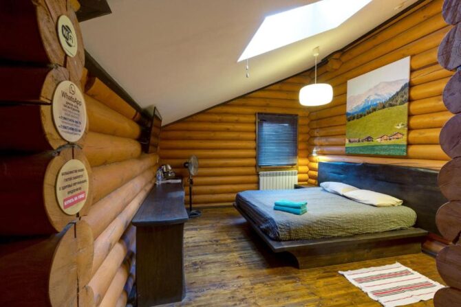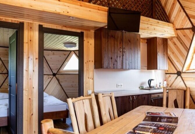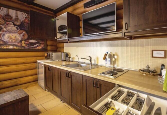 “I liked the service, very friendly staff. The room is clean, cozy, everything is decorated with wood. Instead of an electric stove, a gas stove is installed. It’s convenient, everything is prepared much faster on it. We plan to come with the company for the New Year” Nastya, Russia