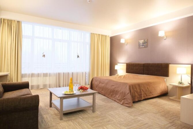 This hotel is considered the ideal place to relax from the hustle and bustle of the city. The restaurant serves European cuisine, grill, developed children’s menu, karaoke and a games room. For accommodation, guests choose one of 45 comfortable rooms. At the request of the guest, three meals a day are included in the price. The restaurant staff will deliver food and drinks to the room upon prior request. On the territory there are small and large saunas with a mini-pool, a billiard room, a sports equipment rental point. For events, including the New Year’s party, there are three banquet halls, excellent sound equipment, incendiary presenter and DJ, guest artists. A transfer from Ufa is possible, since the recreation center is located 100 km from the capital of Bashkortostan.