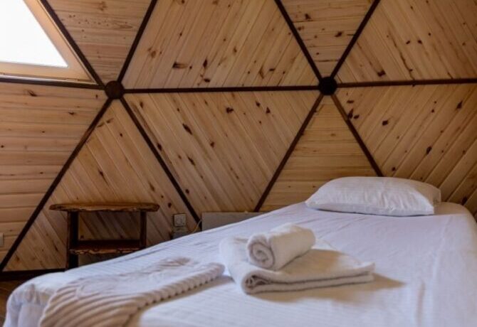 80 km from Ufa is an exclusive premium class hotel “Quiet Coast”. It is located in a natural park and covers an area of 35 hectares. There are 8 rooms in thefund. The architecture of the houses is interesting. They are built in the form of dome yurts of nomads, but from modern materials – concrete, glass, wood. The restaurant takes care of the meals of the guests. The chef with his team assists in the preparation of the catch, grilled dishes, game. In winter, the trout fishing season opens on one of the 8 nearby lakes. The services of a hunting ranger with his own transport are also provided. Gazebos with a brazier are available for rent. A contact zoo is founded on the territory, in which each guest can take custody of the animal. As entertainment, horseback riding, cross-country skiing, snowmobiling, skating, tubing, crossbow shooting are offered.