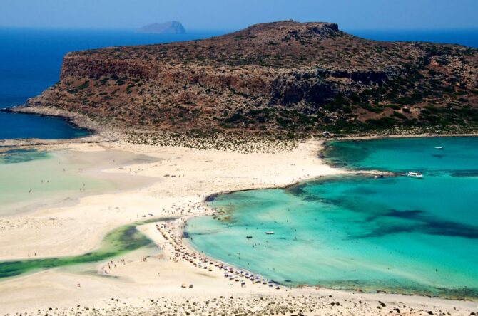 There are no infrastructure facilities in Balos. There are no cafes and shops, so it is better to take drinks with you. Absolutely “wild”, but very beautiful beach. In this place 3 seas are connected – Ionian, Libyan and Aegean. The water itself is also unusual, looking at which you can be amazed by the number of shades of azure color.
