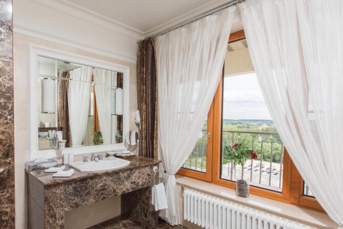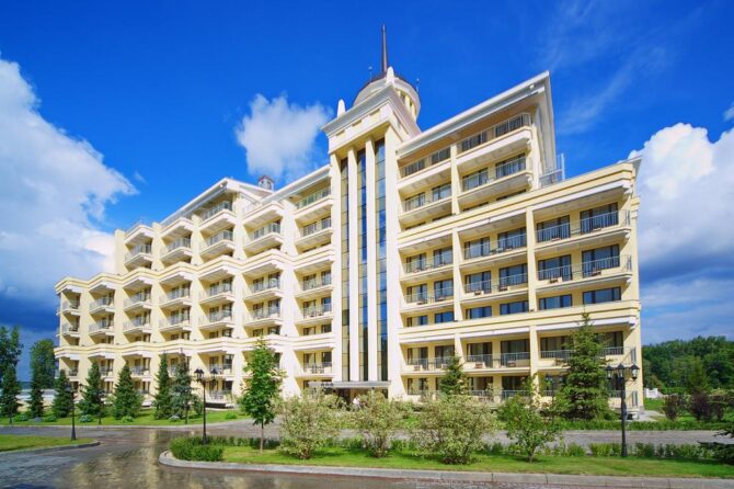 Hotel M’Istra’L’Hotel & SPA is built on the Istra reservoir. If you find out information about it from the tour operator, an employee of the company will certainly tell you that the rest in this complex is suitable for all categories of travelers. Young couples who have just celebrated their wedding and rush to retire to spend their honeymoon, spouses with children, representatives of the older generation and active youth, as well as successful businessmen often come here. Many are in a hurry to celebrate a significant event in the circle of relatives and close friends.