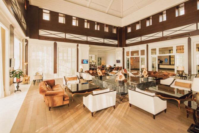 The hotel was opened in 2013 and covers an area of 170,000 m2. The main building has 6 floors. The hotel has 600 rooms (standard, superior, riverside rooms, family suites, suites, master suites, corner suites and villas of various types).