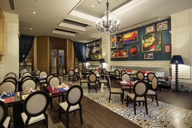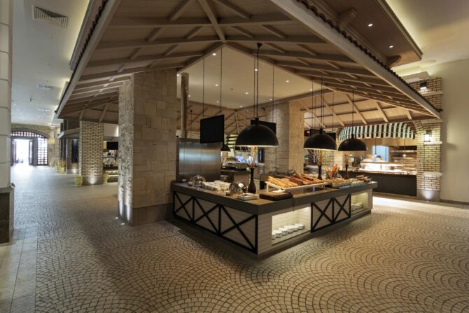 The hotel has a main restaurant and 5 other restaurants, 5 à la carte restaurants, children’s restaurant (“Poppet’s Railroad”), Green Lagoon Restaurant, “Stela Beach, a patisserie and 13 bars (Cordelia Lobby, Irish Pub, Caprice, Bebek Coffee House, Centric, Comfort, Aqua, Solaris, Aristocrat Lounge, Vitamin Citrus, Olimpic, Amphi and Eternity Disco Bar).