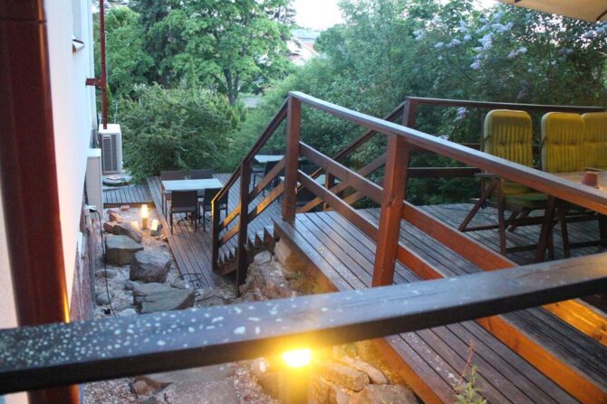 Enjoy a homely Atmosphere in Finnish at the guest housein the centre of Naantaly. To enjoy all the delights of measured Scandinavian life, you do not need to go beyond the Asuntohotelli Kaivo! The garden has everything you need for a family barbecue, and young travelers will be delighted with the playground in the courtyard of the house. A cold winter evening can be spent in the traditional Finnish sauna.