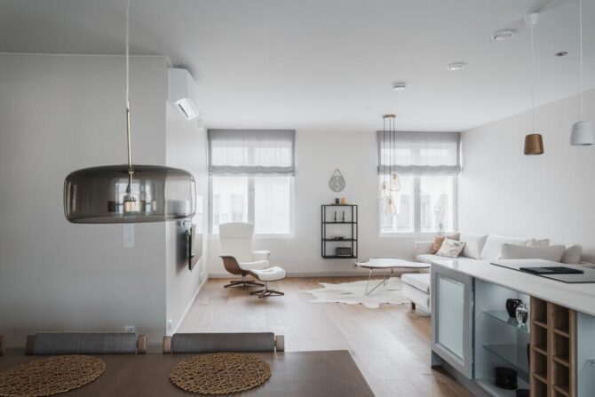 Luxury apartments for two are an ideal choice for a couple who prefer peace and home comfort while traveling. Spacious apartment, with an area of 100 square meters. meters, equipped with the latest fashion and designed in light colors. The elegant interior is complemented by authentic wooden details. It offers a terrace with city views and a private sauna.
