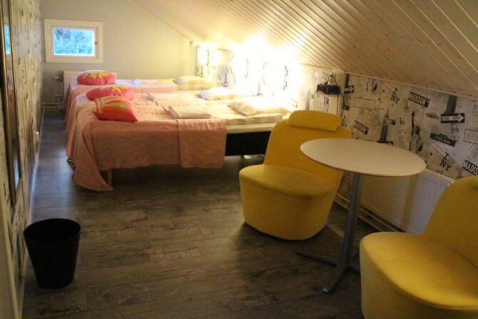 This small guest house is located in a quiet area of Naantaly, and is located just a 15-minute walk from the city centre. Villa Sukka offers very affordable accommodation prices for a large company. Neat rooms can accommodate up to four people, but do not have a shower. Bathrooms are shared only.