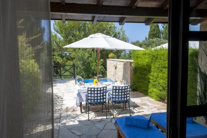 You can stay in a comfortable family room or in a villa with a terrace. Separate beds for children are not available.