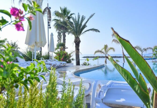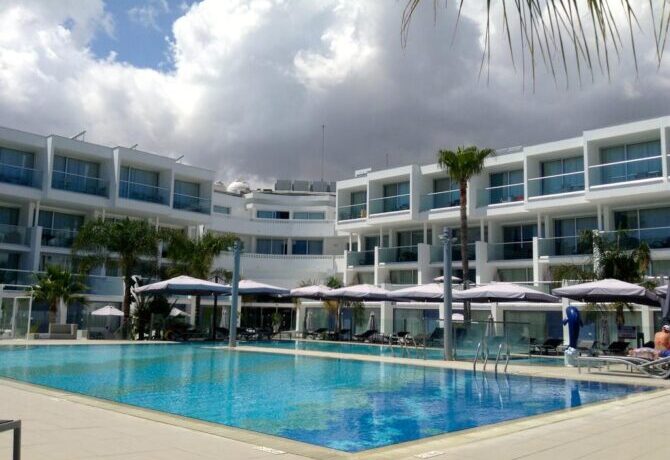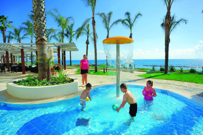 This hotel is located in Paphos. For travelers with children, all conditions are created here. During the day, kids are entertained by animators, and after sunset there are discos, exciting show programs, sports competitions with prizes. If you want to relax with your company, an experienced nanny will look after the child – this service is paid separately.