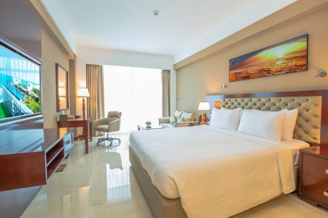 The 5-star Marino Beach Colombo Hotel is located in the business center of the city, almost on the coast, and is positioned as an elegant holiday destination for tourists of all categories – from businessmen who came on a short business visit to newlyweds and vacationers who are going to spend a week in the city. All the sights of the unofficial capital of Ceylon are nearby, as well as one of the largest shopping centers in the city Marino with ultramodern cinemas, boutiques and salons.