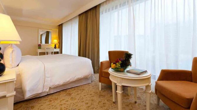 The main difference of the Galle Face Hotel is the tireless care for the leisure of guests. Here you can not sit on your own – what is worth only the only pool with salt water in Colombo! And almost mandatory for guests excursions to the historical places of the hotel with a specially trained guide? Guests can play croquet on the south lawn, use the motel’s fleet or book a tour of Sri Lanka through the reception.