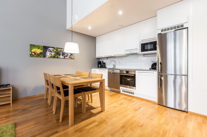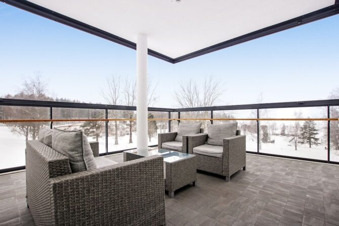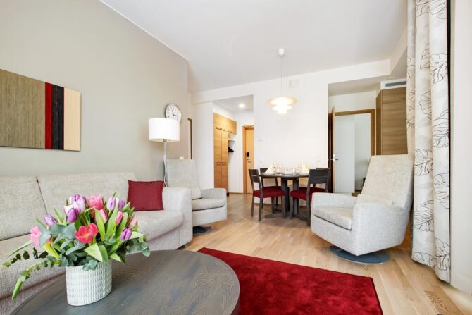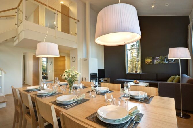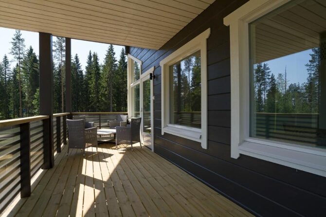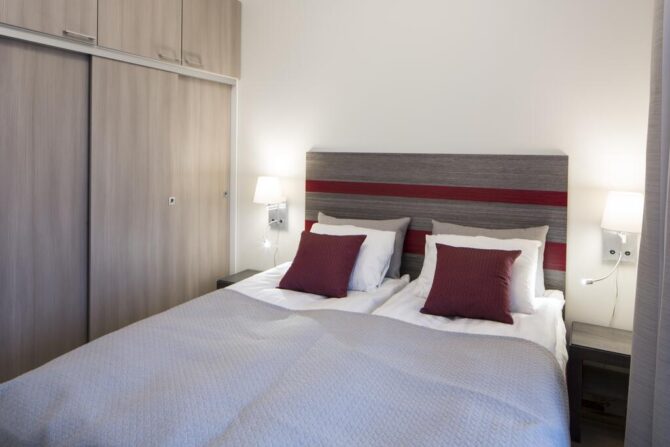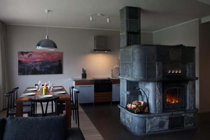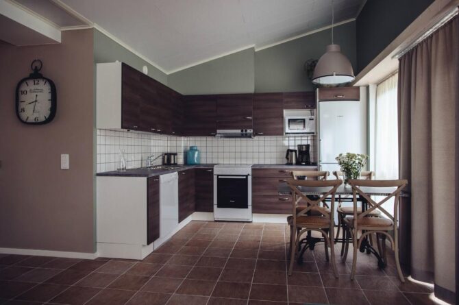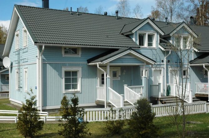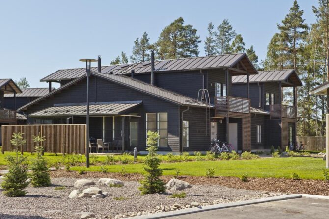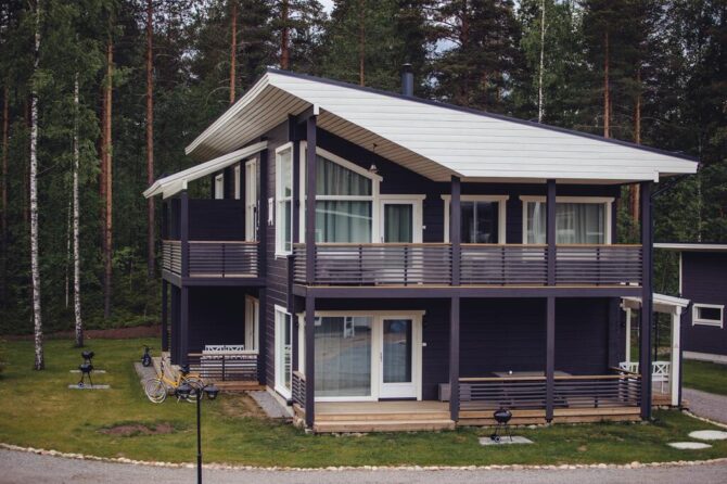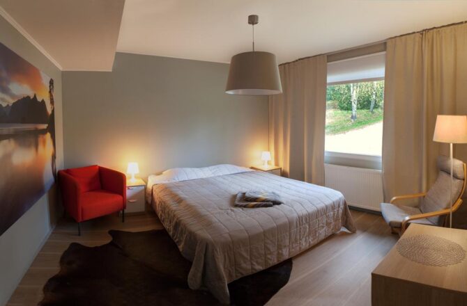 A 15-minute drive from Imatra, modern apartments are located right in the forest. The main partner is the hotel “Imatran Kylpyla Spa” located literally 400 meters away. It registers visitors. Vacationers can come here at any time to dine in a restaurant, swim in an indoor pool, visit the gym. And then go back to the apartment with its own terrace to plunge into the world of nature and silence.