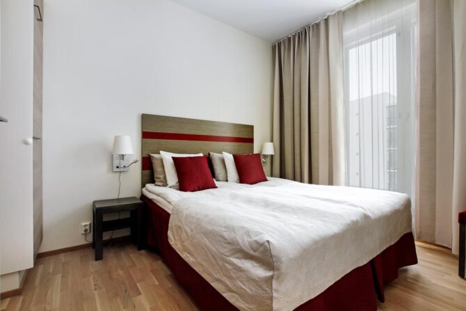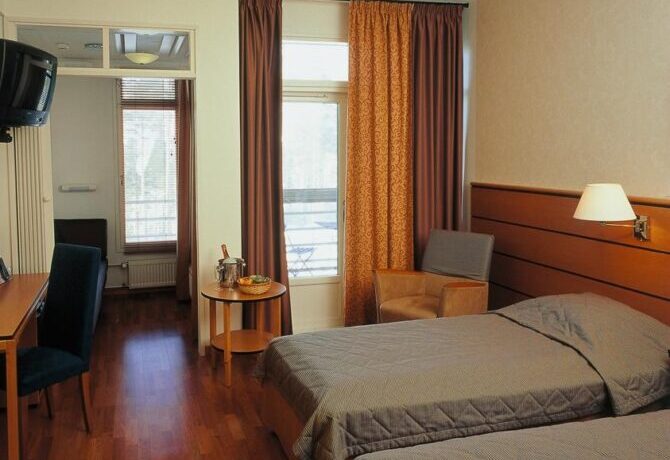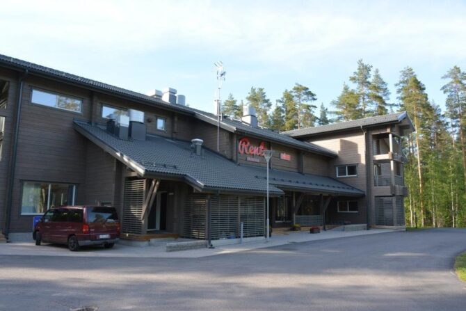This place is more designed for lovers of sports and outdoor activities. In 150 meters there is the Ice Palace, in 300 meters – tennis courts, a little further – the famous spa center Imatra. Ski and cross-country trails are laid nearby. The marina and the comfortable beach of Uytonniemi are located half a kilometer from the hotel. Visitors rated the place at 9 points. The room rate includes breakfast, sauna.