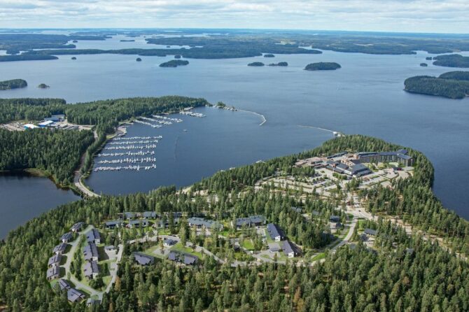The complex is located on the shore of Lake Saimaa and covers an area of 300 hectares. hotels offer spacious rooms, delicious breakfasts. On the territory there is a spa, saunas, an indoor pool with water slides and a fountain, sports and children’s playgrounds. Here you can order any wellness treatments from a massage in the sauna to a pleasant pastime in the salt room. Restaurants, cafés and bars are open from morning until late evening. They can buy a quick meal or book a table for dinner. Watch the competition in the circle of fans invites the sports bar.