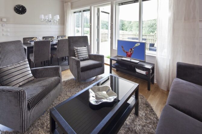 All apartments in townhouses are designed for different groups of vacationers. There are elite Fisherman’s House, Hunter’s House, as well as simpler and cheaper cottages. They are designed for the company of friends or family holidays with children. Meals are organized independently. Staff can provide addresses to restaurants, bakeries and coffee shops near the village.