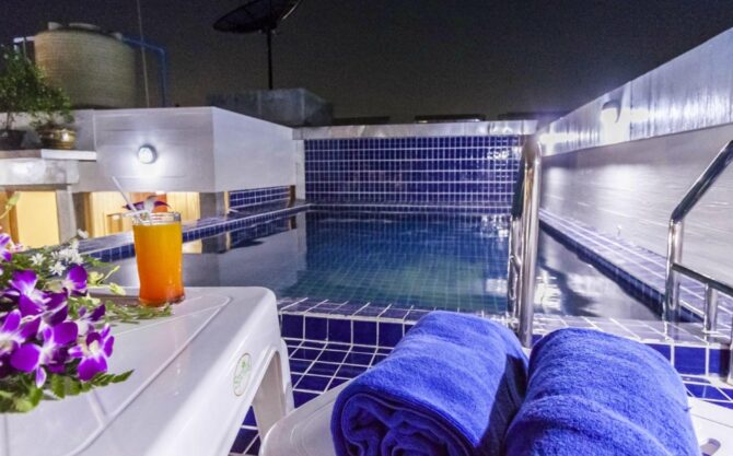The closest beach area to the hotel is Patong – the most popular holiday destination among tourists. Due to the large accumulation of vacationers on the beach, garbage often appears, but the staff tries to quickly clean the territory. Patong is more equipped and cleaner than any beach in Pattaya.