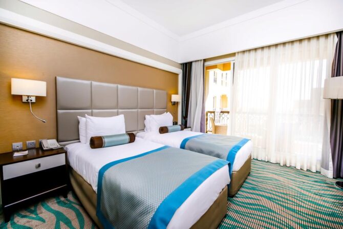 - Family rooms – living quarters equipped for family holidays. In terms of “luxury” are inferior to the above types, since only showers are installed in them. But there are more of them – only 186 apartments. They are almost always available for advance booking, so you can always choose the right option with a view of the garden, pool or sea.