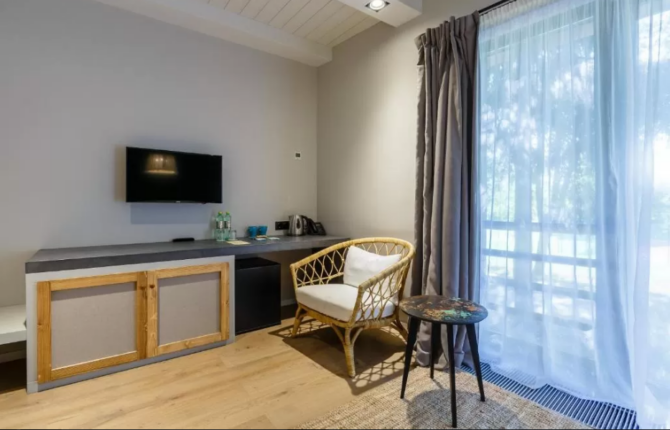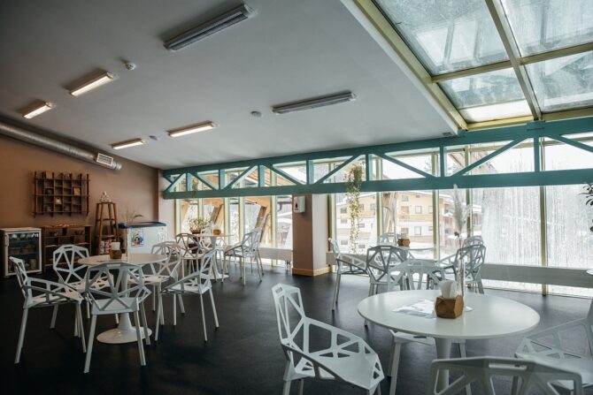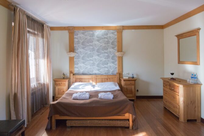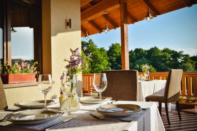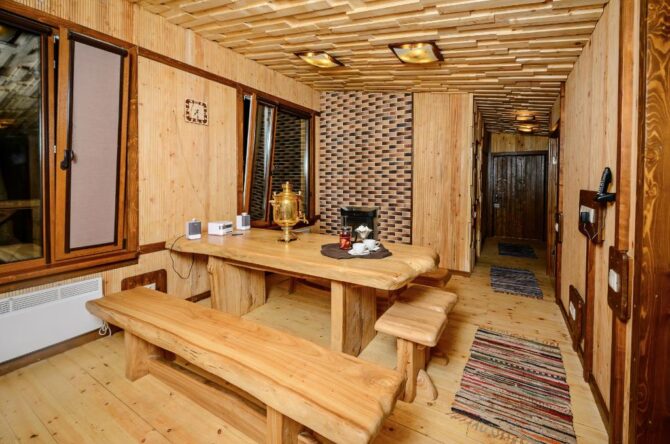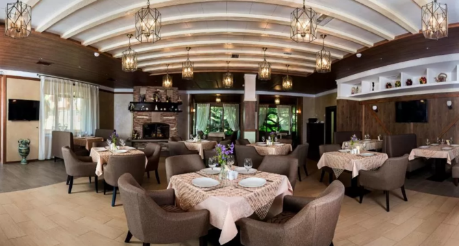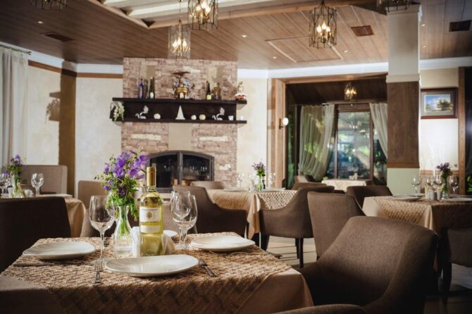 Restaurant “U rakita” is focused on breakfast, lunch and dinner. The design of the spaces is made in the style of an Alpine chalet: with a fireplace, European furniture, pastel colors and panoramic windows. Very cozy and comfortable. Here is the author’s cuisine from the chef, a good selection of desserts and a special children’s menu.