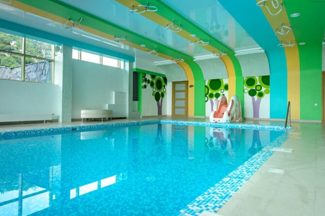 The center of attraction is the pool and 4 types of steam rooms. The adult pool has a depth of 180cm and is quite long, so that lovers have a place to swim. For small children there is a separate pool up to 60 cm deep.