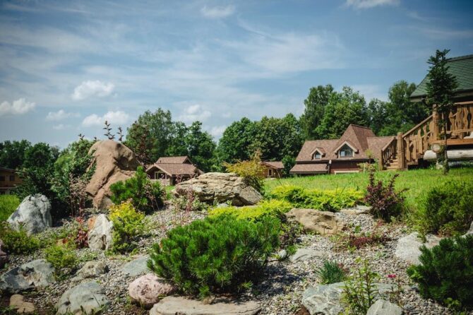 Velna Eco Spa Resort is a themed spa hotel for a country premium holiday with many interesting entertainment areas and parks. There is something to do here: an abundance of services and types of recreation, delicious and high-quality food, beautiful interiors and equipped areas for walking, comfortable apartments and houses for living. Wealthy people come here mainly from Moscow, changing the monotony of offices to the nature of Tarusa and nega in the spa.