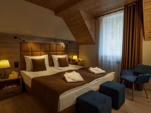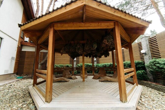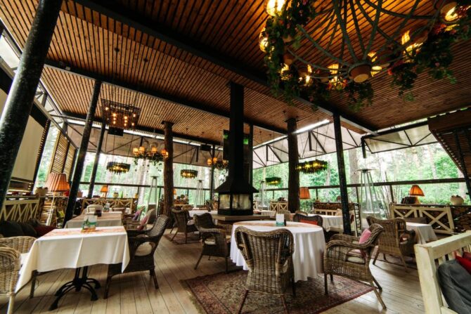 The culinary art of the local chef is known throughout the city, and often even guests who do not live in the “Veranda” visit the restaurant and bar of the hotel passing through. High quality of dishes, skillful serving, even aristocracy – the hallmark of the institution. During dinner, quiet live music is played so as not to disturb the tranquility of the pine forest. And all the natural beauty can be seen through panoramic windows that give uniqueness to the restaurant. Weddings, corporate events, banquets are organized here.