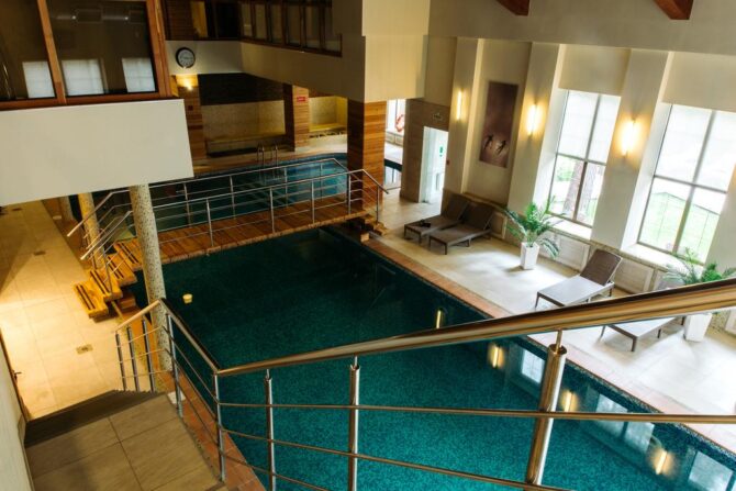 - There is an indoor swimming pool, you can visit it throughout the year, including with children over 4 years old. The water is very clean, its quality is constantly checked, the pool is equipped with a countercurrent and hydromassage.