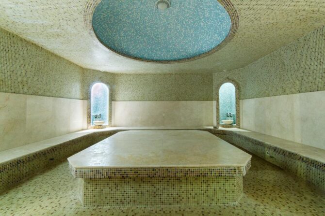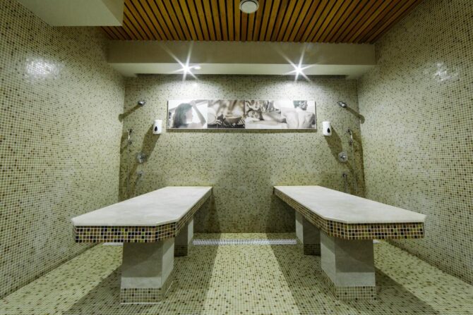 - Guests can visit the steam rooms (Moroccan and Finnish), Russian bath, sauna, hammam. All these types differ in the temperature of the air in the room and the level of humidity, decide what suits you best for health.
