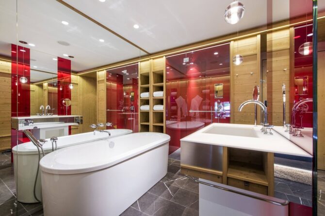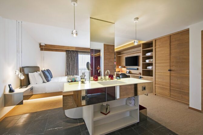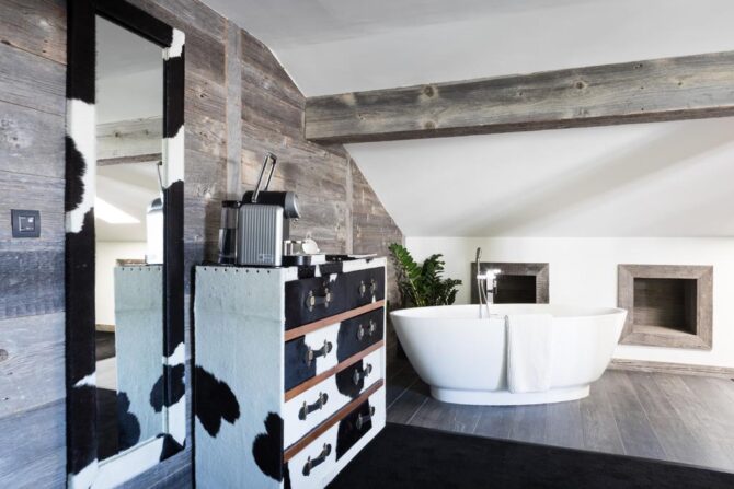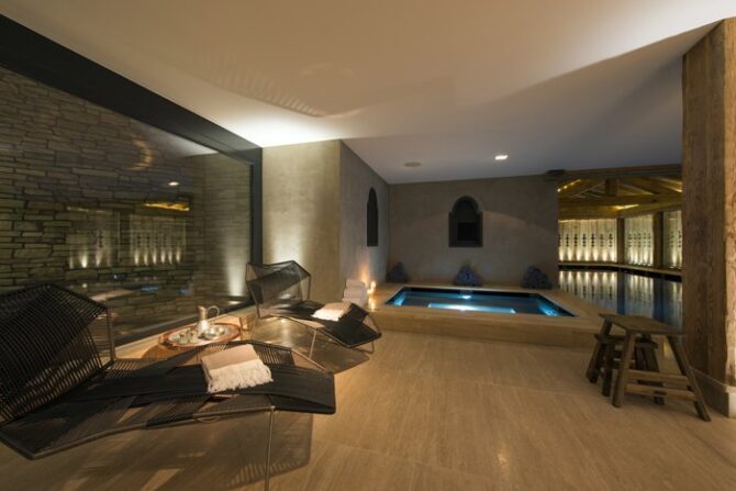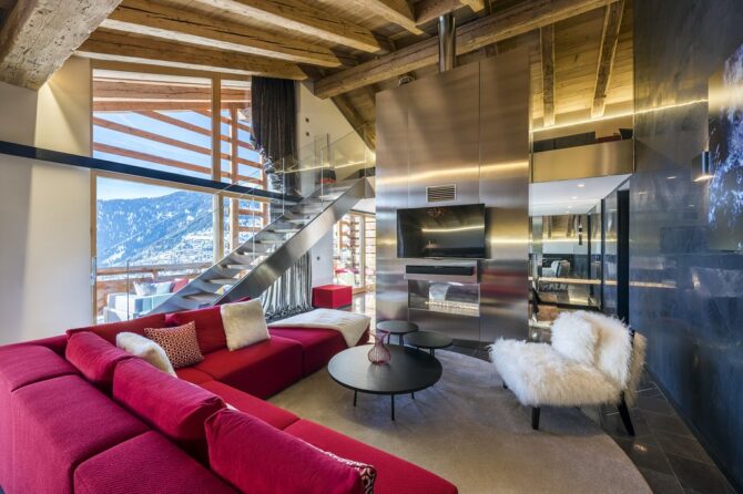 The experimental chalet is located in the heart of Verbier. It was designed by Fabrizio Casiraghi, an architect famous for his style combining modernity and historical authenticity. It features a restaurant serving local cuisine, a nightclub and a cocktail bar with specialty drinks. In the famous nightclub there are often celebrities who come to the resort. Locals also come here to relax. The hotel’s spa area consists of 3 treatment rooms, a sauna, a hammam, a solarium and a hot tub. Other facilities include a reception, concierge, roomservice, ski services, parking and private shuttle service.