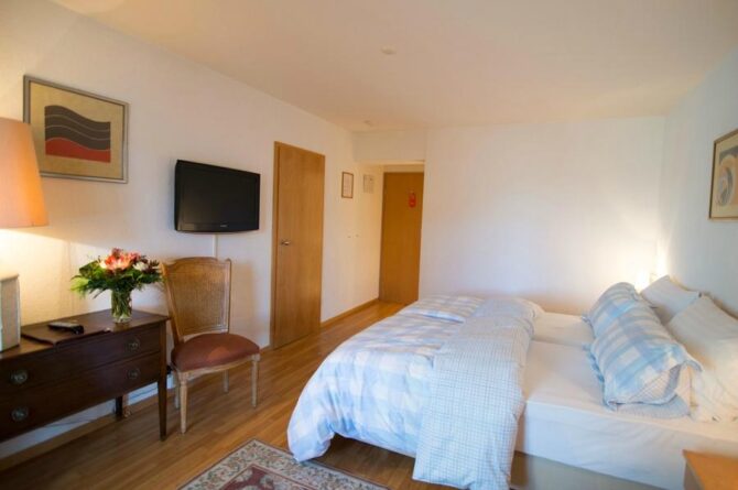 The mountain chalet was built in 1974. This traditional Alpine hotel is located in a quiet area close to the centre. For accommodation of guests are offered one, two-bed rooms and superior duplex rooms. The hotel likes the thoughtful interior of the premises. There is nothing superfluous, everything has a functional load. Breakfast is served according to the Swedish system. A restaurant serving local cuisine is a stone’s throw away. For relaxation, spa services are available. Sauna and steam bath are included in the payment of accommodation, massage treatments are available for a fee. There is a storage room for sports equipment with a drying cabinet for clothes. Parking on the street is free, in the garage for an additional fee. Pets are allowed.