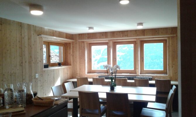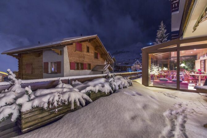 The old building is located right on the central Square verbier. The interior uses antique furniture and decorative elements characteristic of the Alpine chalet. For accommodation there are one, double rooms, there is a panoramic room and a suite “Veranda”. An extra bed can be placed at an extra cost of CHF 60. A continental breakfast is served in the morning. Lunch and dinner can be enjoyed at the nearby restaurants La Channe, Le caveau and L’ecurie.