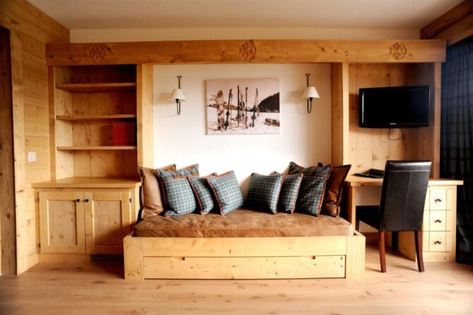 The hotel is assigned 4 stars in terms of comfort. It is 100 metres from the cable car and the Medran ski lift. All rooms are double. Some can have an extra bed for CHF 100. A continental breakfast is served in the morning. There is also a bar and a tea lounge with fresh pastries throughout the day. Open-air parking is free. For space in the garage will have to pay. Pets are welcome here. A restaurant and spa are located on site at the partner hotel, which can be reached by a free shuttle bus.