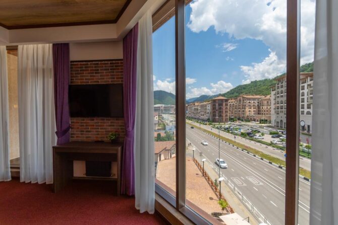 The excellent location of the hotel relative to the slopes and the center of the village, the main Olympic venues plays an important role. You can diversify your vacation and add positive emotions by visiting the sights of Sochi.