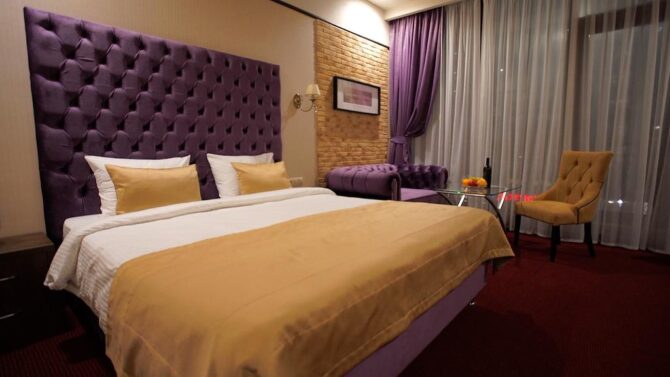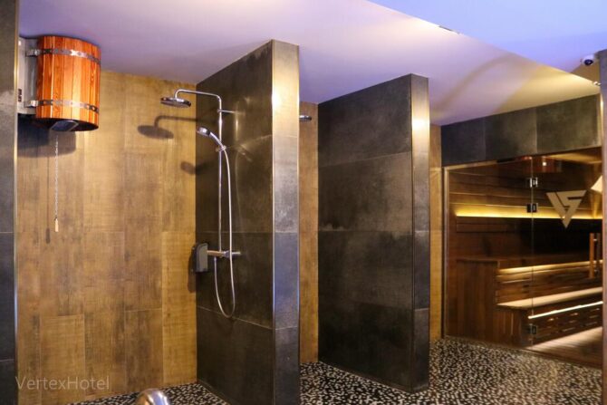 The most popular type of room in the hotel “Vertex” is a deluxe for two with a balcony, one double bed, a cozy bathroom with a rain shower or cabin. On request, it is possible to accommodate three.