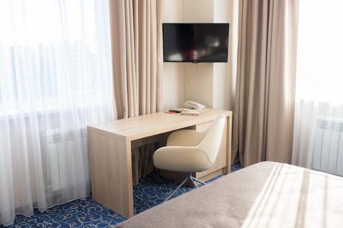 - Economy standard (18 sq. m)- inexpensive in price and without breakfast included in the payment. Rooms of this category are located on 4-9 floors, have a combined bathroom, work desk, refrigerator, personal safe. You can contact the porter through a multifunctional phone. A hairdryer and make-up mirror are in the bathroom.