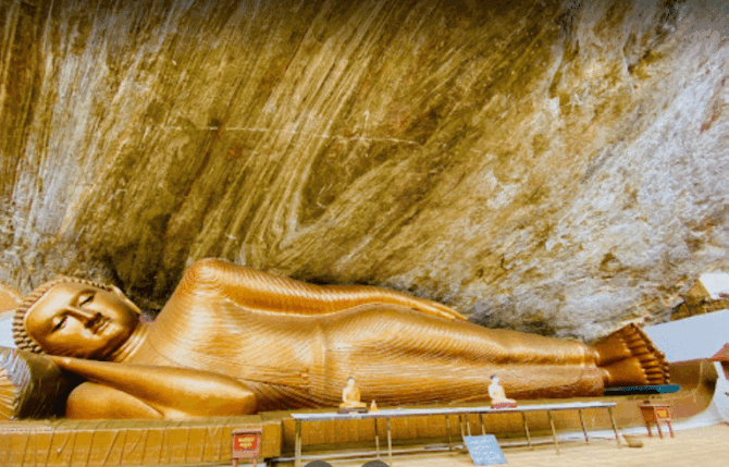 In this cave, one of the largest in Asia, the remains of human skulls aged 37,000 years were discovered. It is located next to the village of Yatagampitiya in the highlands of the island. It is also called the mammoth cave. It is 200 feet long, 175 feet high inlet, and 160 feet wide. The cave is located at an altitude of 400 feet above sea level. Inside there are karst halls over 400 feet high. As archaeological research is still ongoing, many natural tunnels are blocked. In addition to research, the cave is also home to a Buddhist temple. A local monk used a stone sledgehammer to clear the entrance and level the ground. In front of the entrance there is a 40-foot statue of a reclining Buddha. The distance from Vadduwa to the place is just over 35 km.